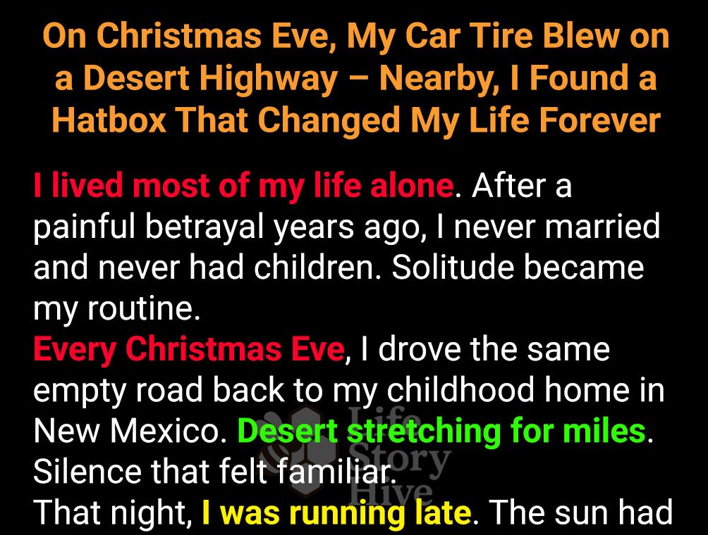 On Christmas Eve, My Car Tire Blew on a Desert Highway – Nearby, I Found a Hatbox That Changed My Life Forever