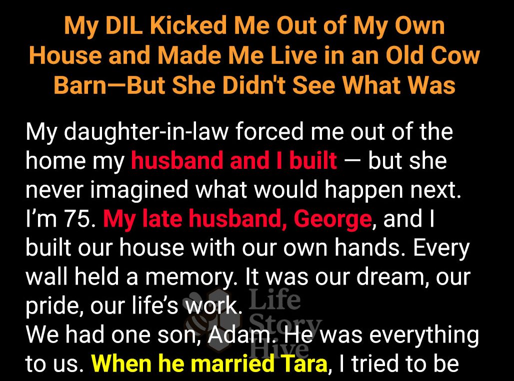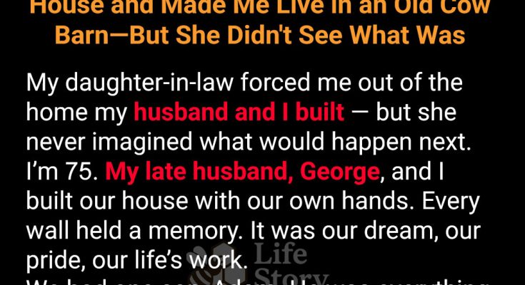 From that day on, I lived in the old cow barn behind the apple trees. It had no insulation, no heat, and the windows rattled with every gust of wind. George had used it as a workshop, so there were old nails, paint cans, and rusted tools scattered everywhere. I cleared out a corner and laid down the yoga mat, then placed a blanket over it. But it wasn’t enough.