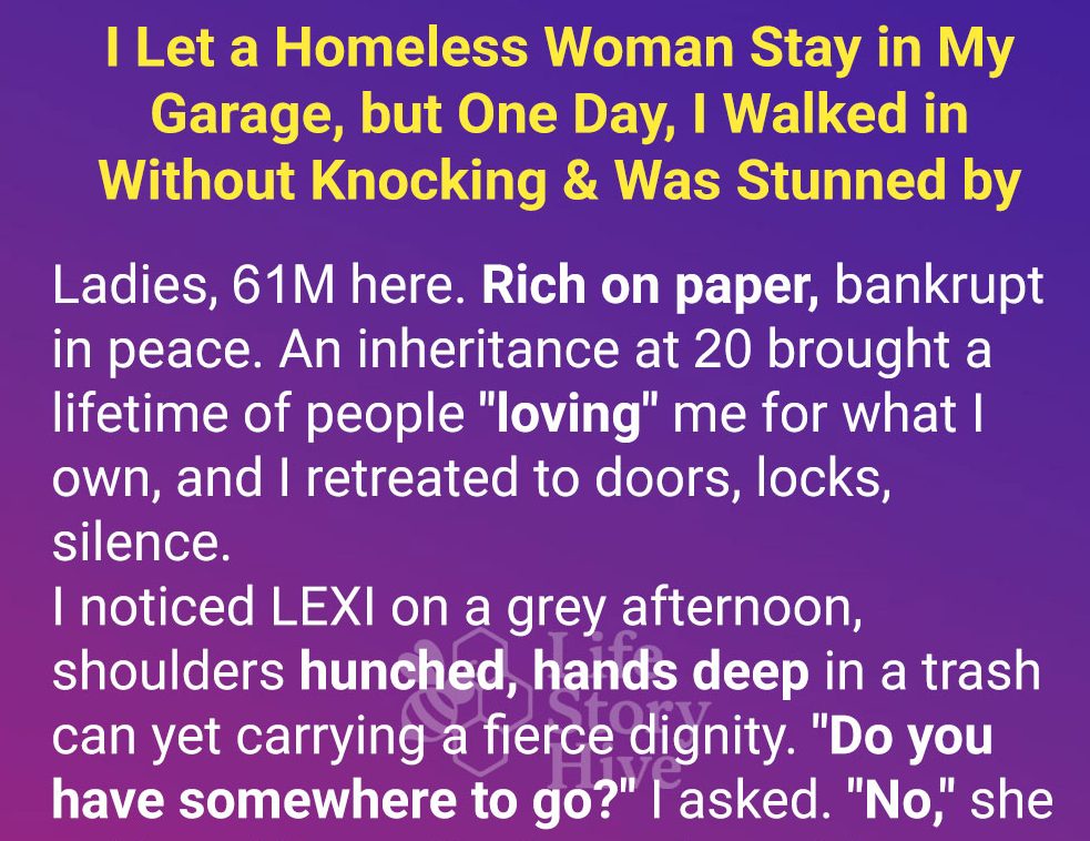 When a wealthy, emotionally distant man offers shelter to Lexi, a homeless woman, he’s drawn to her resilience. Their unlikely bond begins to grow — until the day he walks into his garage unannounced and discovers something disturbing. Who is Lexi really, and what is she hiding?
