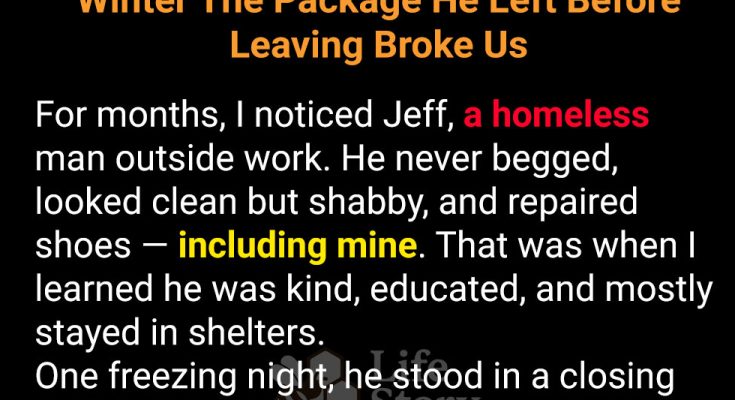 One night, just before Christmas, the air was freezing. I pulled my coat tighter as I walked to my car, but something made me stop. Through the window of a café about to close, I saw Jeff. He was sitting alone at a table, his head down, clutching a small package wrapped in brown paper.