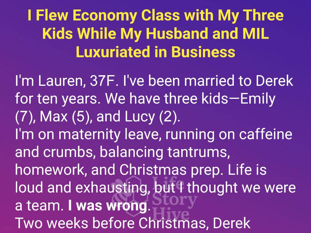 I thought marriage meant partnership, but when my husband booked business-class flight tickets for himself and his mother while sticking me with three kids in economy, I realized I’d been living a lie. What I did next wasn’t just revenge; it was reclaiming my life.