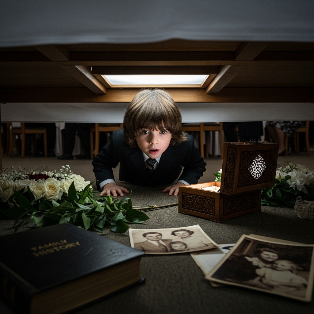 At My FIL’s Funeral, My 4-Year-Old Was Crawling Under the Table – What He Saw There Turned Our Lives Upside Down