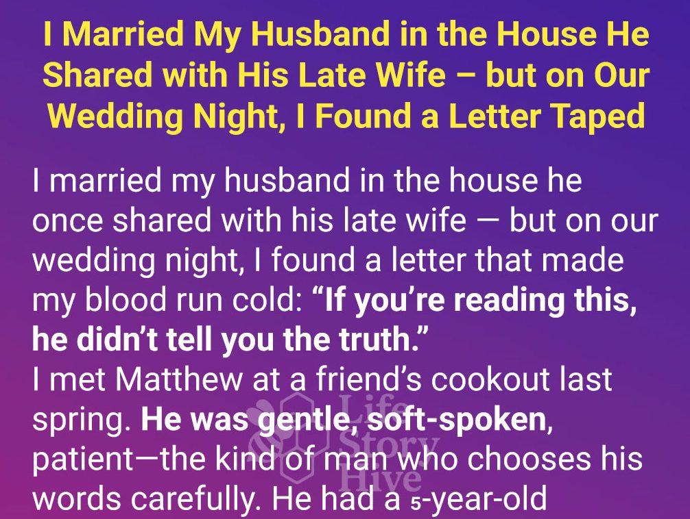 On our wedding night, in the house my husband once shared with his late wife, I found a letter hidden in my nightstand. It opened with a chilling warning: “If you’re reading this, he didn’t tell you the truth.” And suddenly, nothing felt safe.