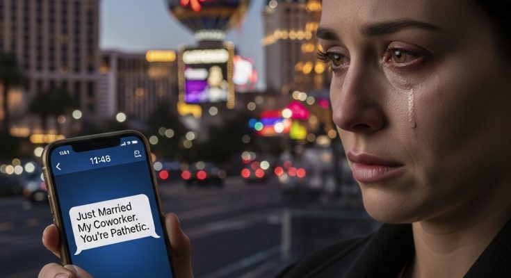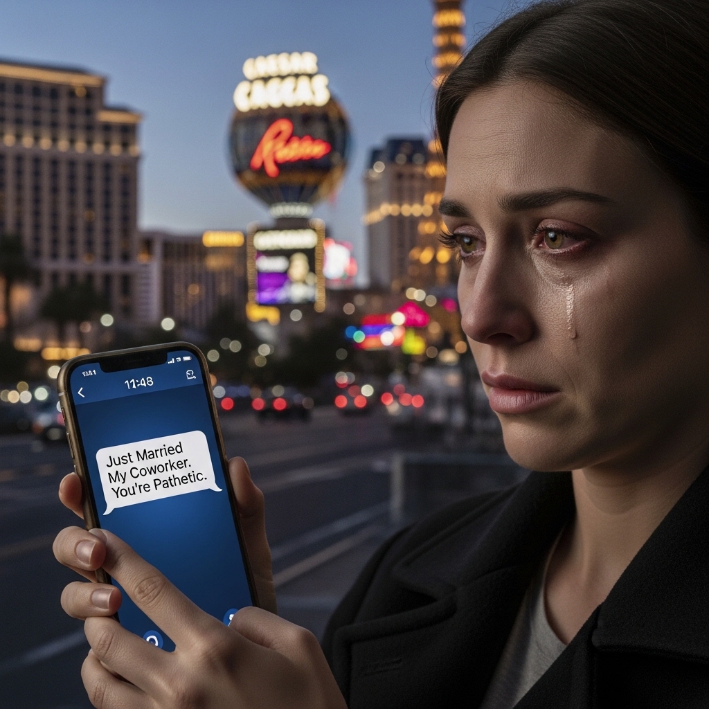 Ethan—my husband of six years—standing under the neon glow of a Vegas wedding chapel. Beside him was Rebecca. His coworker.