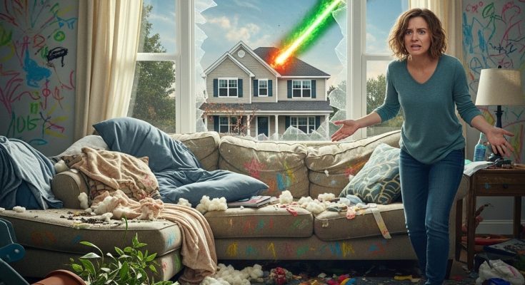 Scratches tore down the entry wall. A shattered frame lay on the floor. Her favorite ceramic bowl was cracked clean in half. Couch cushions were stained. Toys were scattered, some broken beyond repair. The rug was sticky in patches where something had been rubbed in instead of cleaned.