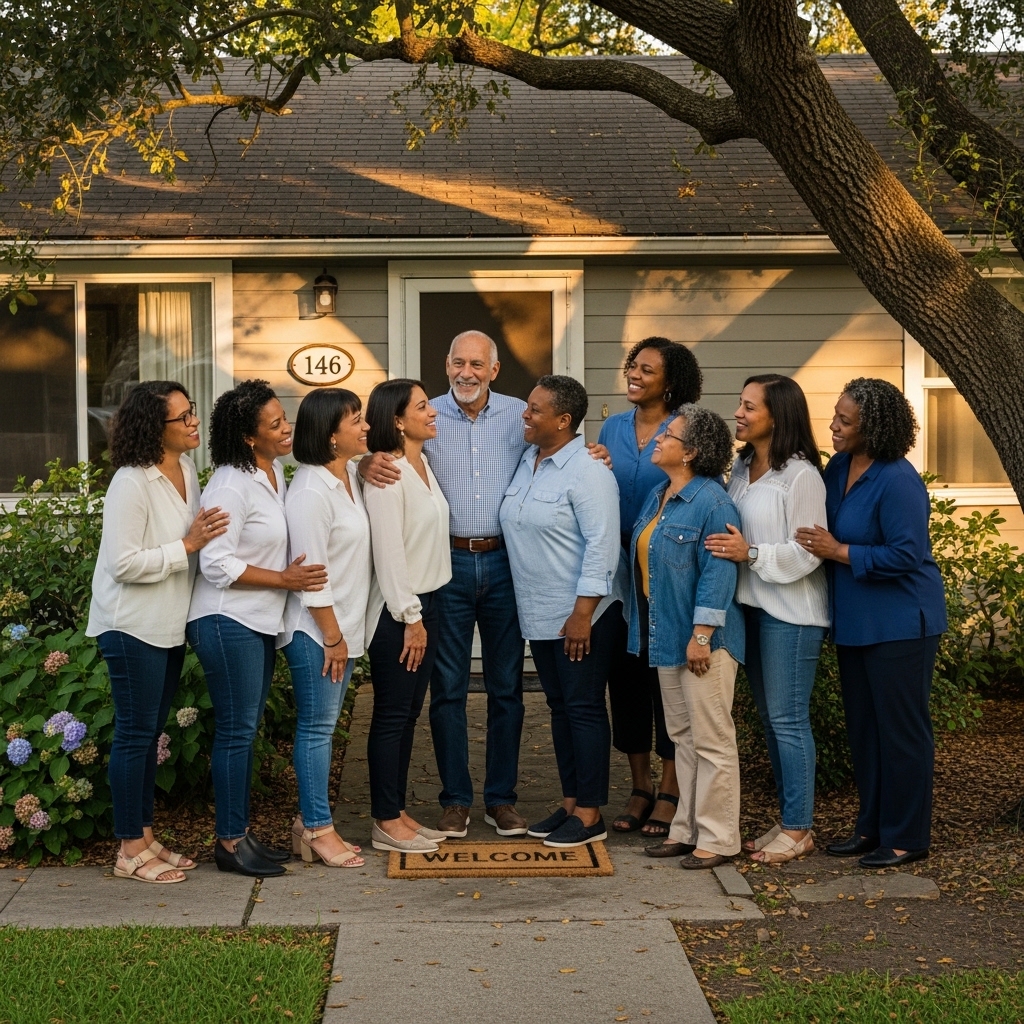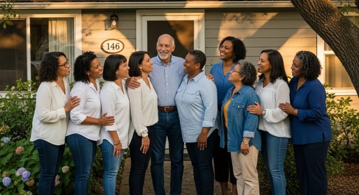 In 2025, forty-six years later, Richard, frail but proud, sat in his favorite armchair. Surrounding him were nine radiant women in cream dresses, hands resting on his shoulders, faces glowing. Cameras clicked. Headlines read: “In 1979, he adopted nine abandoned girls. See them now.”
